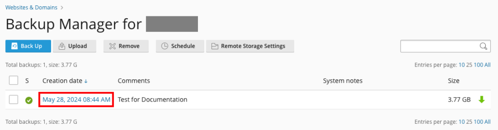 Gehen Sie dazu in die Verwaltung Ihrer Backups: