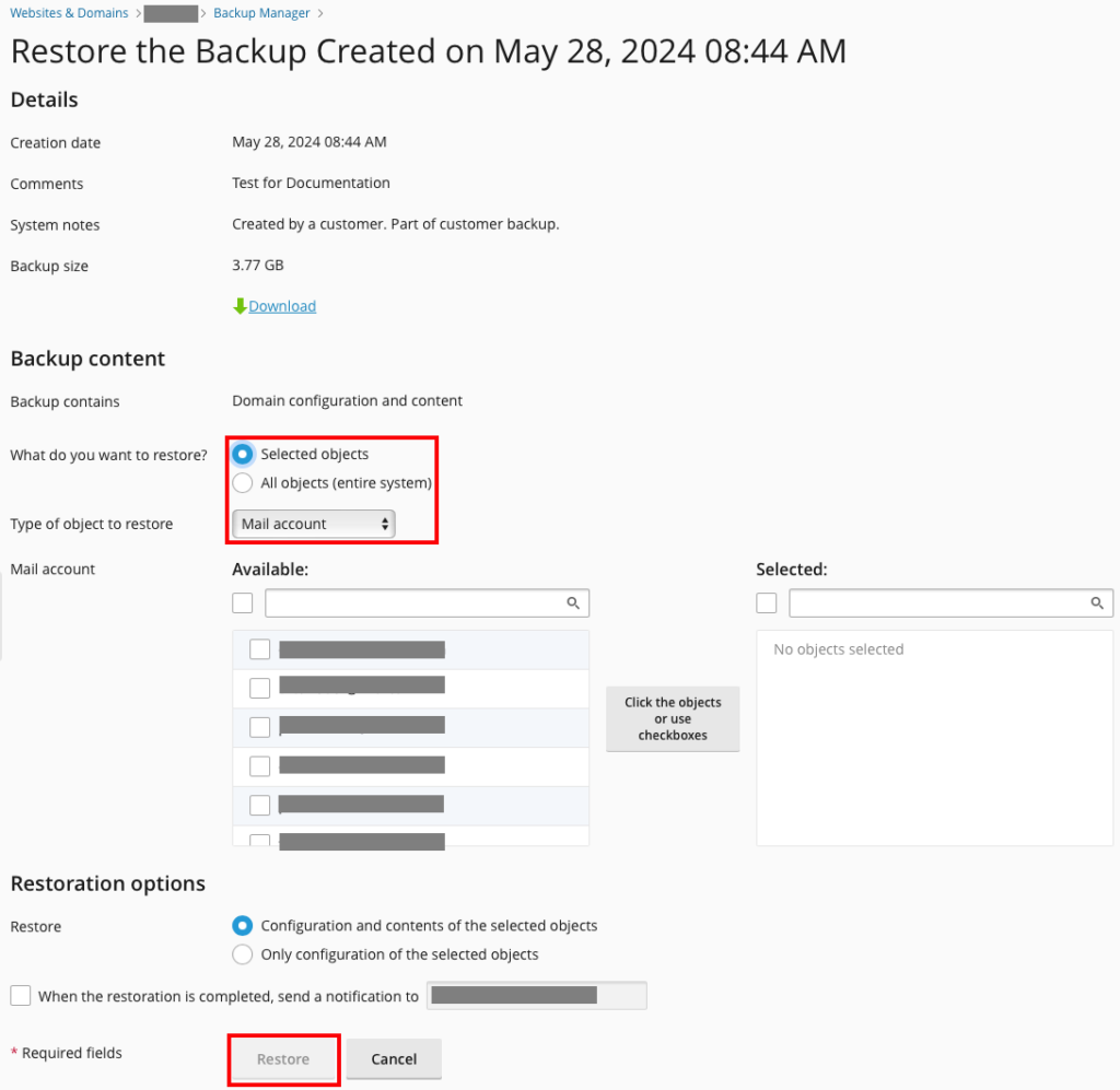 Sie können in der Regel alle Details auf Ihrem Backups wiederherstellen. Beachten Sie hierbei bitte, dass bestehende Daten durch eine Wiederherstellung überschrieben werden und somit nicht mehr verfügbar sind.