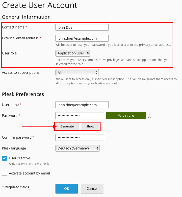 Sie können nun die Angaben für den neuen Benutzer ausfüllen und auf OK klicken.